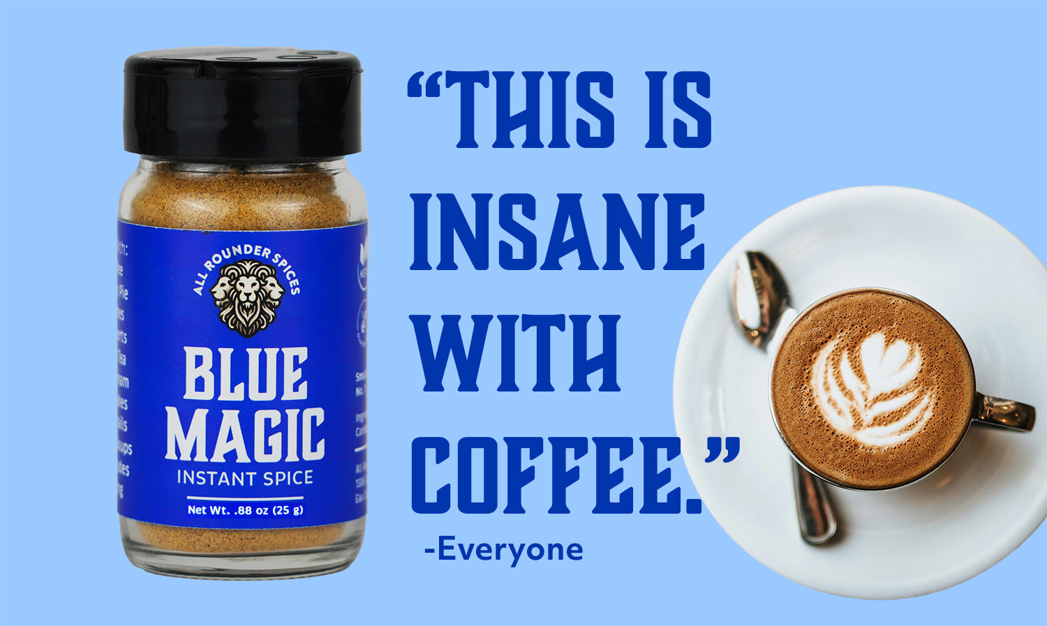 Spice up your dishes with Blue Magic, the instant spice that packs a punch! This 1 oz bottle features a unique blend of spices, including cardamom and mace, to add a burst of flavor to any coffee.